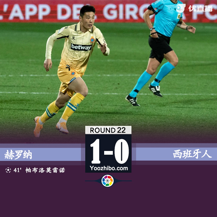 北京时间1月24日01:15,西乙第22轮,西班牙人客场挑战赫罗纳。上半场,恩巴尔巴远射中柱,帕布洛-莫雷诺助赫罗纳取得领先;下半场,普阿多头球中柱,武磊第77分钟替补登场,但没有太多机会。最终,西班牙人客场0-1不敌赫罗纳。
