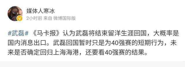 24直播网讯 5月1日 据《足球报》记者寒冰消息,武磊回国暂时只是为40强赛的短期行为,未来是否确定回归上海海港,还要看40强赛的结果。