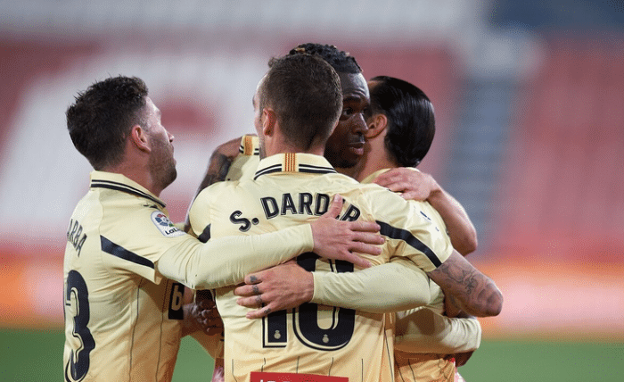 24直播网讯 西班牙人本赛季踢完了35轮比赛,拿到了71分,领先第三名的阿尔梅里亚10分,在联赛还剩下7轮的情况下,西班牙人只要再赢下4场就可以提前宣布完成冲甲,如果阿尔梅里亚持续出现近期一胜难求的画面,西班牙人可能更早宣布完成升级。