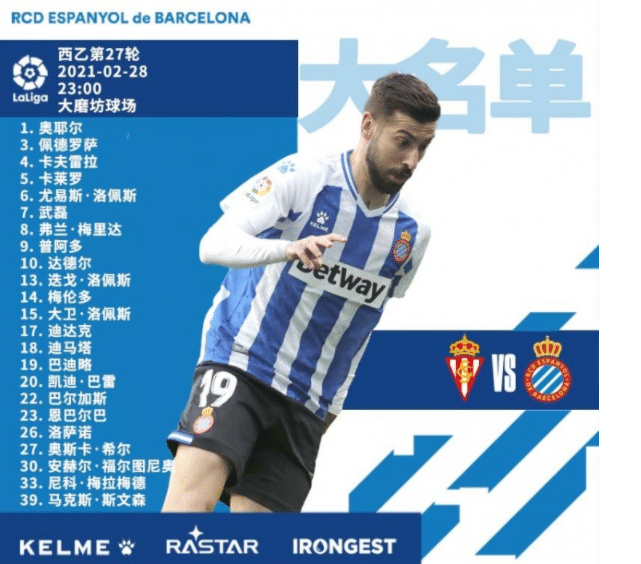 24直播网2月28日讯 西班牙人队通过官方公布了西乙第27轮客场挑战希洪竞技的比赛球员大名单,这其中武磊继续入选,而球队的主力前锋德托马斯这场比赛将会缺席,这也让武磊有了重新为球队参赛的机会,毕竟武磊已经连续3场比赛都没有出场了,枯坐板凳席270分钟,他确实需要机会来证明自己。