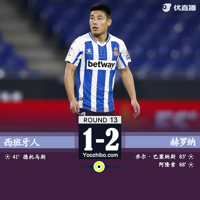 24直播网讯:北京时间11月21日4时(西班牙当地时间20日21时),西乙第13轮开始1场较量,西班牙人主场遭逆转1比2负于赫罗纳,遭遇本赛季第2场败绩,也是主场首负。武磊连续4轮担任替补,第80分钟替补出场。德托马斯连续5轮破门。终场前,赫罗纳连下两城反超。
