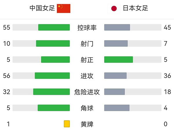 关键事件: 第12分钟,日本女足打破僵局!山本柚月右路过掉陈巧珠后下底横传门前中嶋淑乃包抄打门球进,中国女足0-1日本女足。 第20分钟,中国女足扳平比分!右路角球开到禁区第一点被守门员挡出门前杨莉娜爆射中楣,随后汪琳琳头球吊射破门,中国女足1-1日本女足。 第31分钟,日本女足反超比分!谷川萌萌子左路甩开姚伟后无人看防情况下杀入禁区内切打远角破门,中国女足1-2日本女足。 第35分钟,日本女足再下一城!反击机会山本柚月右路直塞到禁区千叶玲海菜插上铲射破门,中国女足1-3日本女足。 第43分钟,日本女足扩大比分!左路角球开到禁区前点防守球员头球后蹭后点古贺塔子凌空扫射破门,中国女足1-4日本女足。 第55分钟,中国女足扳回一球!左路角球开到禁区门前姚伟头球顶在立柱上第二点张琳艳头球补射破门,中国女足2-4日本女足。 第60分钟,中国女足再扳一城!右路角球开到禁区前点杨莉娜头球后蹭破门,中国女足3-4日本女足。 最终中国女足3-4不敌日本女足无缘决赛。