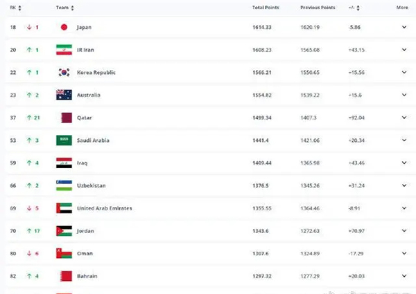 24直播网02月15日讯 ,FIFA公布最新排名,国足从第79名下滑至88名!亚洲排名第13!亚洲杯的糟糕战绩是导致国足排名下滑的主要原因。