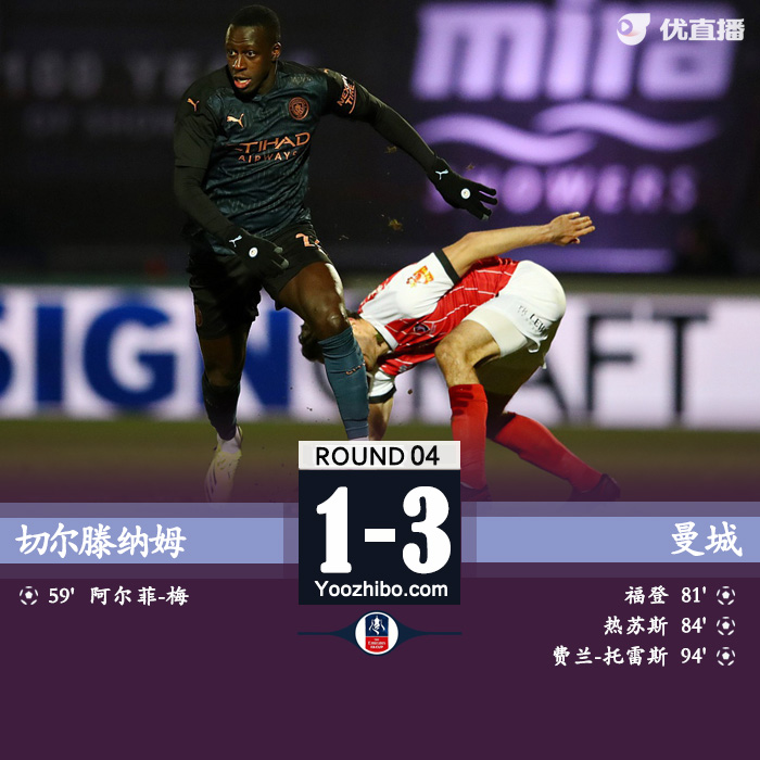 北京时间1月24日01:30,足总杯第4轮继续进行,曼城客场挑战英乙球队切尔滕纳姆。上半场,B-门迪的射门被托泽尔在门线上解围。下半场,阿尔菲-梅利用界外球战术打进1球,福登和热苏斯连入两球逆转比分,补时阶段费兰-托雷斯再入1球锁定胜局。最终,曼城3-1客场逆转切尔滕纳姆,顺利晋级16强。