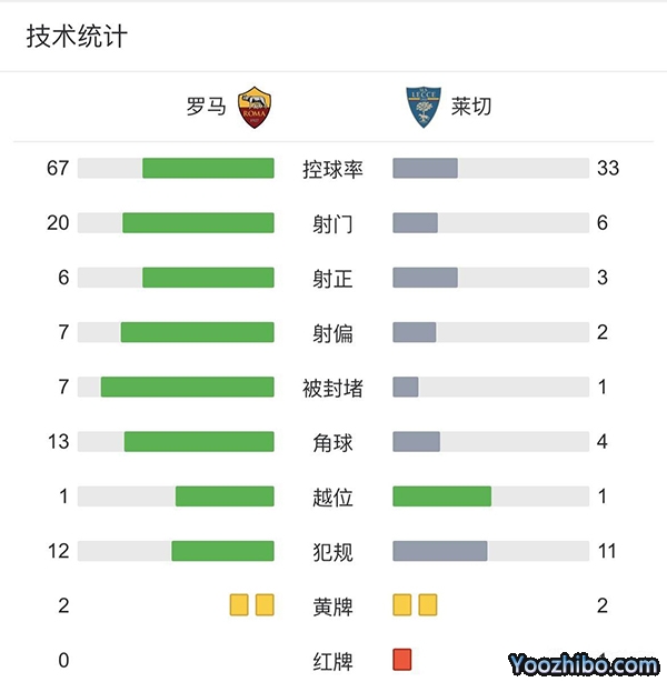 罗马2-1莱切 斯莫林连场破门迪巴拉点射后伤退
