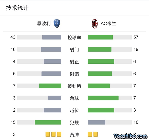 24直播网讯:北京时间10月2日凌晨2点45分,意甲联赛第8轮在卡斯特拉尼体育场开打,AC米兰前往客场对阵恩波利,本场比赛的当值主裁判为詹卢卡。上半场,米兰占据场上主动,萨勒马克尔斯门前射门滑门而过,随后比利时人因伤被克鲁尼奇换下,卡拉布里亚也因伤被替换下场。下半场,吉鲁任意球射门击中横梁弹出,莱奥助攻雷比奇破僵。伤停补时阶段,巴伊拉米任意球直接破门绝平。读秒阶段,图雷门前破门完成反绝杀,莱奥随后一条龙破门彻底锁定胜局。全场比赛结束,AC米兰客场3-1击败恩波利。