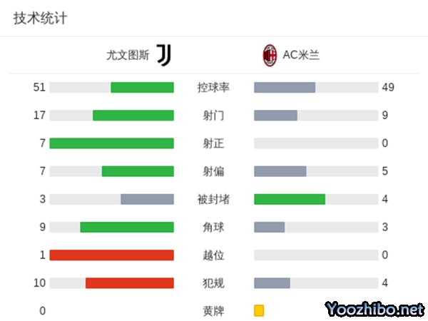 尤文0-0米兰 奇克&吉鲁伤退米兰全场0射正