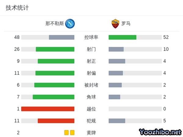 全场比赛结束,那不勒斯2-2战平罗马。