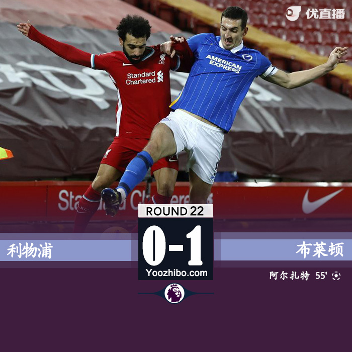 北京时间2月4日凌晨4:15,英超联赛第22轮继续进行,利物浦坐镇主场迎战布莱顿。上半场,萨拉赫错失单刀,双方均无建树。下半场,阿尔萨特打破僵局,此后利物浦围攻未果。全场比赛结束,利物浦0-1不敌布莱顿,遭遇主场两连败。