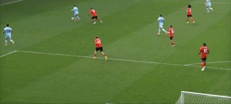 第73分钟,乔丹-克拉克抢射破门,卢顿扳平比分,1-1