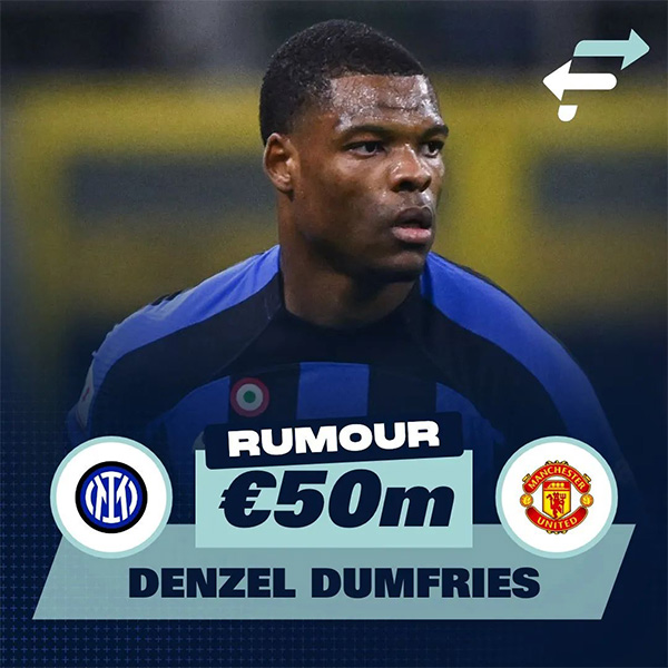 另一名经常与曼联联系在一起的右后卫是荷兰国脚邓弗里斯,《都灵体育报》称,国米为这名27岁悍将标价5000万欧元。其合同2025年6月到期,蓝黑军团不想同意他500万欧元的年薪要求,因此可能将之出售。