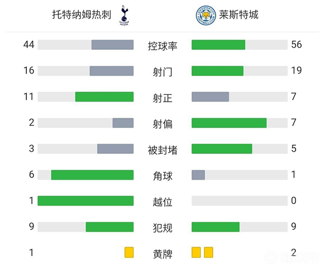 全场比赛结束,热刺主场6-2大胜莱斯特城。