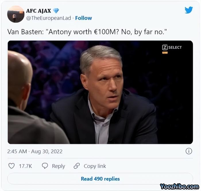 安东尼不值1亿欧元,这是必然的,「安东尼值1亿欧元?不,绝对不值!」荷兰名宿巴斯滕断言。但对滕哈格而言,转会费不是他关心的事情,他关注的是安东尼能带来的元素。换句话说,球迷也许不能奢望安东尼证明自己适合一名1亿欧元的球员,但只要他对曼联的贡献达到主帅的期望,帮助红魔进步,就是成功的球员。