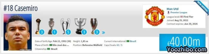 两种报道哪个才正确,周一的双红会前自有分晓。但意大利转会专家法布里济奥·罗马诺似乎认为卡塞米罗可以现身梦剧场,他披露曼联新援已经去过曼彻斯特,并且完成了体检,现在缺少的文件只是英超的劳工证而已。同时,《马卡报》记者马里奥·科尔特加纳(Mario Cortegana)透露,卡塞米罗的曼联球衣号码已经确定,他将18号战袍。这个号码过去两年属于B费,本赛季葡萄牙中场继承了马塔留队后留下的8号球衣。更早之前曼联的18号名将则包括阿什利·扬和斯科尔斯。在德国转会市场网上,卡塞米罗的资料中,已经直接写明了曼联新18号。