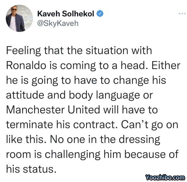北京时间8月15日,来自英国权威媒体《天空体育》记者索尔赫克尔的最新消息,因为不满C罗的态度和做法,曼联方面已经有些忍无可忍了。如果C罗接下来没有改变自己的态度的话,曼联会考虑与其直接解约(terminate)。