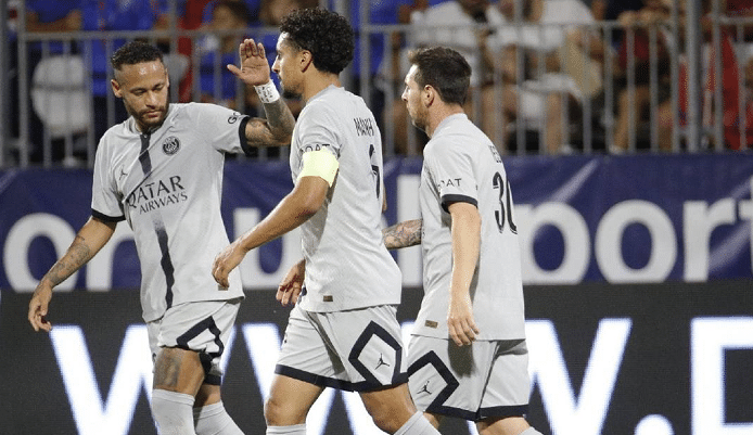 24直播网08月07日讯 新赛季法甲拉开大幕,大巴黎客场5-0大胜克莱蒙,这场比赛梅西表现极其出色,他不仅助攻内马尔打进一球,同时还上演梅开二度的好戏,单场比赛2射1传,同时第二个进球非常精彩,是接到队友传球之后胸部停球的倒钩,这也是梅西职业生涯第一次打进倒钩。梅西的倒钩也征服了客场的球迷,他们集体高喊梅西的名字,世界足坛能够有这样待遇的球员,着实不多。