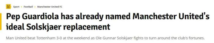 《曼晚》称,在主场0-5输给利物浦后,索尔斯克亚的帅位已经岌岌可危,尽管随后3-0战胜热刺给了索尔斯克亚喘息的机会,但随后两场与亚特兰大和曼城的比赛,如果曼联没有取得理想的成绩,索尔斯克亚依然可能下课。