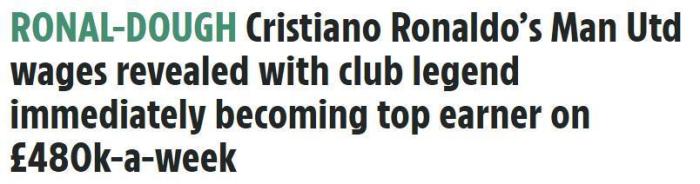 《太阳报》表示,曼联为C罗开出的周薪高达48万镑,这样一来C罗的薪水将达到曼联队内第一,同时也是英超联赛第一。