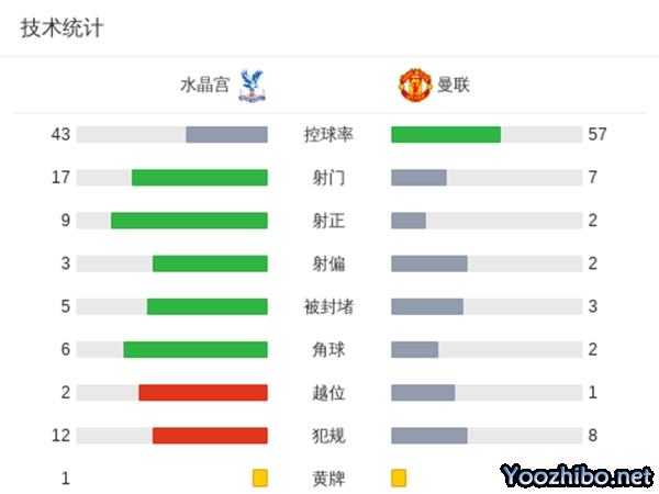 第12分钟,水晶宫界外球机会,奥利斯接球后一路突入禁区,随后左脚低射得手,水晶宫1-0曼联。