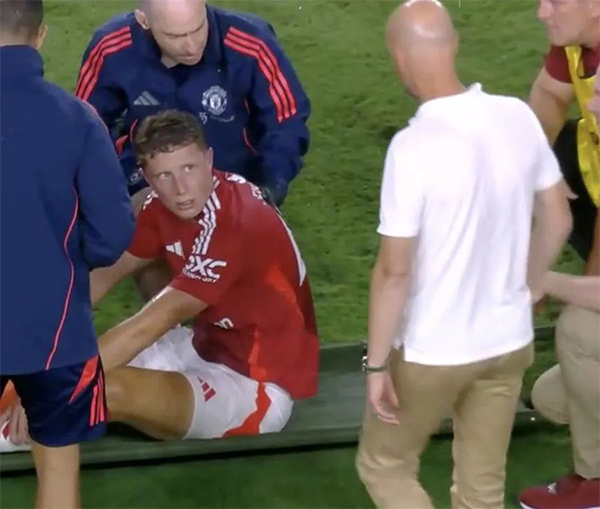 在滕哈格麾下,青训中卫费什可谓不幸至极。他在滕哈格执教后的第一场热身赛被罚下,今夏第一场热身赛就受过伤,本场他在下半时替补上阵,但最终却在一次犯规中导致自己脚踝,染黄之余还被担架抬下。