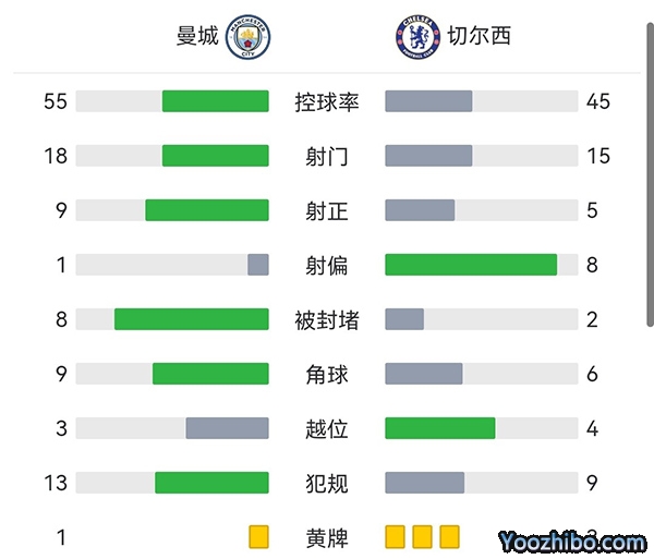 全场比赛结束,最终曼城主场2-0淘汰切尔西晋级下一轮。