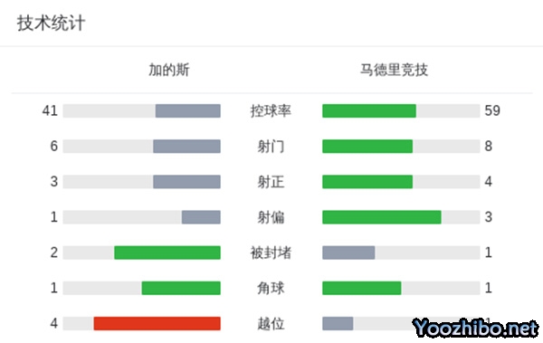 全场比赛结束,马德里竞技0-2加的斯。