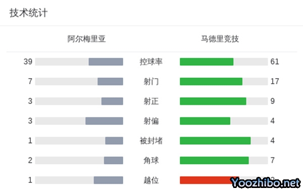 全场比赛结束,马竞2-2阿尔梅里亚。