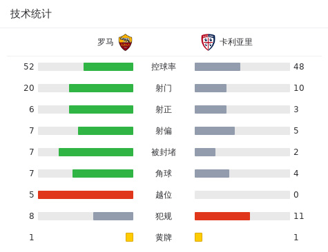 全场比赛结束,罗马4-0卡利亚里。