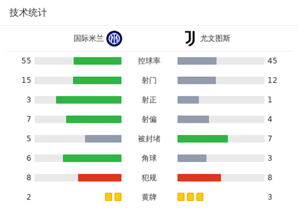 24直播网讯 :北京时间2月5日意甲联赛第23轮,国际米兰主场对阵尤文图斯。上半场,巴雷拉传中,加蒂在图拉姆的压迫下自摆乌龙。下半场,恰尔汗奥卢的弹射击中立柱弹出,斑马军团整场比赛仅1射正。全场比赛结束,国米1-0战胜尤文,在少赛一场的情况下领先对手4分。