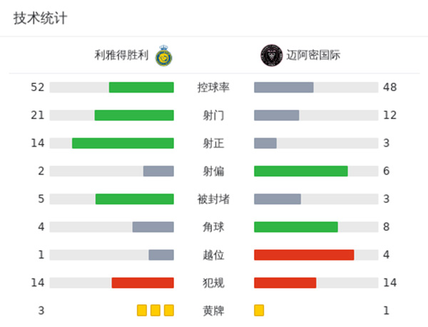 第52分钟,塔利斯卡主罚点球一蹴而就,利雅得胜利4-0迈阿密国际!