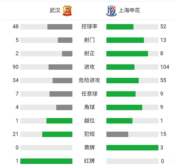 上海申花3-1武汉 金信煜巴索戈破门赵宏略飞踹染红