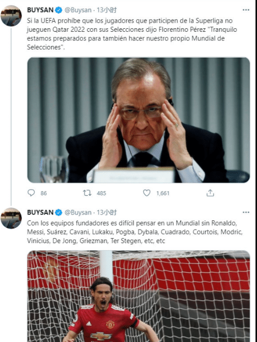 24直播网讯 近期,足坛最大的新闻或许就是皇马、曼联等12支球队成立了欧超联赛了。当然,欧超联赛成立之后,国际足联和欧足联都在阻止欧超联赛的成立,为此,他们甚至告诫球员,如果参加欧超联赛,那么他们将会无法参加世界杯和欧洲杯的比赛,这可能对球员的影响非常大,不过欧超主席兼皇马主席佛罗伦迪诺并不在乎,他表示球员依然可以参加世界杯,如果不能我们自己组织世界杯。