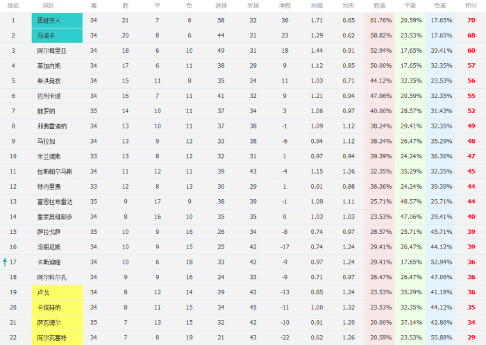 赢球之后,赫罗纳在积分榜继续追赶巴列卡诺,目前拿到了52分联赛积分,暂列第7名,比第6名的巴列卡诺只少3分。最近7轮比赛,赫罗纳其实表现出了非常强烈的冲甲欲望,收获了4胜2平1负的佳绩,而且成为了西班牙人的克星,本赛季实现了对西班牙人的双杀,接下来赫罗纳依然是有机会杀进前六参加冲甲附加赛。