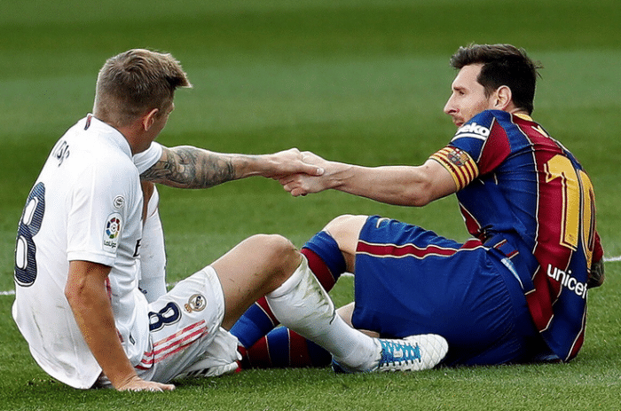 积分榜形势,皇家马德里目前29轮过后积63分,巴塞罗那积65分,榜首的马竞积66分,但是马竞的势头相当糟糕,最近一胜难求,屡屡出现爆冷丢分的情况,本轮还出现略伦特、苏亚雷斯、孔多比亚3大将停赛的局面,争冠之路已经难被看好。因此巴萨和皇马两队可以说是最大的争冠热门,本场国家对比赢球的一方则可能直接脱颖而出成为争冠第一大热。