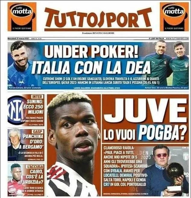 博格巴2016年以创队史纪录的将近9000万英镑转会费重返曼联,但从来没有达到外界对他的极高期望,红魔拥趸也多数希望他能走人。《都灵体育报》在头版头条断言,在本赛季结束时,博格巴离队,对曼联、尤文和球员本人都是最佳选择。而且,转会与否,将取决于超级经纪人拉伊奥拉,而不是博格巴或曼联。