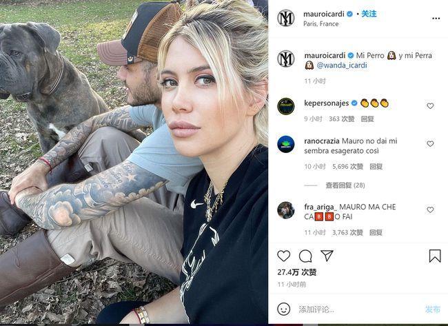 有天赋,但是人品有问题,又不自律,这让伊卡尔迪这名27岁的球员身上的争议不断,4月1日,伊卡尔迪又奉献出了自己的新作品。在最新更新的社交媒体动态中,伊卡尔迪晒出了自己和妻子旺达和宠物狗的合影,秀秀恩爱,这对于伊卡尔迪来说也是很正常的事情,可是问题出在了伊卡尔迪的配文上,在这张图片的配文上,伊卡尔迪写到:我的狗和母狗,伊卡尔迪还特意@了他的妻子旺达,随后旺达也在评论中回复:你真有意思。