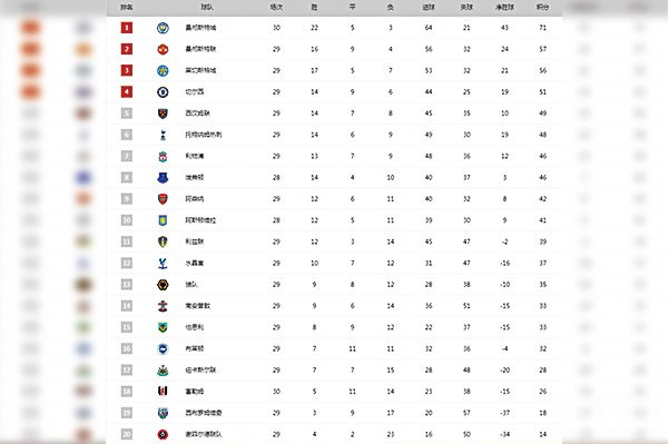 截至目前,曼城队以22胜5平3负的成绩积71分高居英超联赛榜首,领先排名第二的曼联队14分之多,堪称新赛季夺冠的最大热门。而在上赛季发挥出色的利物浦队目前仅以13胜7平9负的成绩排名联赛第七位,即便如此英格兰足坛名宿欧文仍然表示利物浦是本赛季第二好的英超球队,对利物浦给予了很高的厚望。