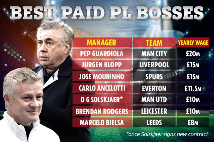 在英超联赛,索尔斯克亚在曼联的收入,将排在各大主帅并列第五,与莱斯特城的布伦丹·罗杰斯一样,仅次于曼城给瓜迪奥拉的2000万镑,利物浦主帅克洛普和热刺教头穆里尼奥的1500万,以及埃弗顿名帅安切洛蒂的1150万。
