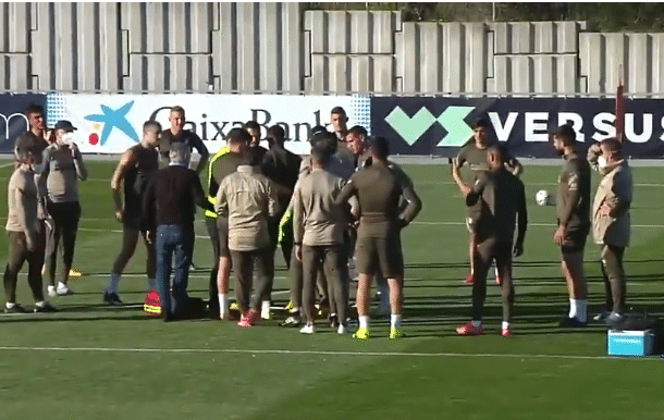 在训练场马竞球员正在训练备战下一场的比赛,对于下一战他们志在必得,但是在训练赛上出现了十分揪心的一幕,穆萨-登贝莱在没有任何征兆的情况下,他突然昏厥倒地,而且身体还出现了抽搐的情况,场上的球员也是来到他身边查看他的情况,队医则是第一时间过来将他的身子侧了过来,而他的很多队友跟随着医护人员来到救护车上取担架,在经过医护人员的现场急救后,穆萨-登贝莱醒了过来,在医护人员的搀扶下他慢慢的站了起来。