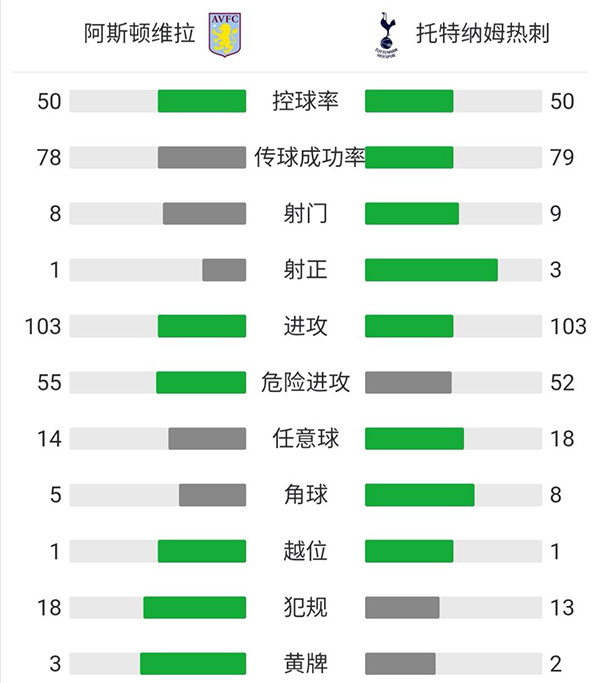 第28分钟,马丁内斯出击解围没有踢远,凯恩送出直塞,小卢卡斯下底横敲到门前,维尼修斯推射空门入网,阿斯顿维拉0-1热刺!