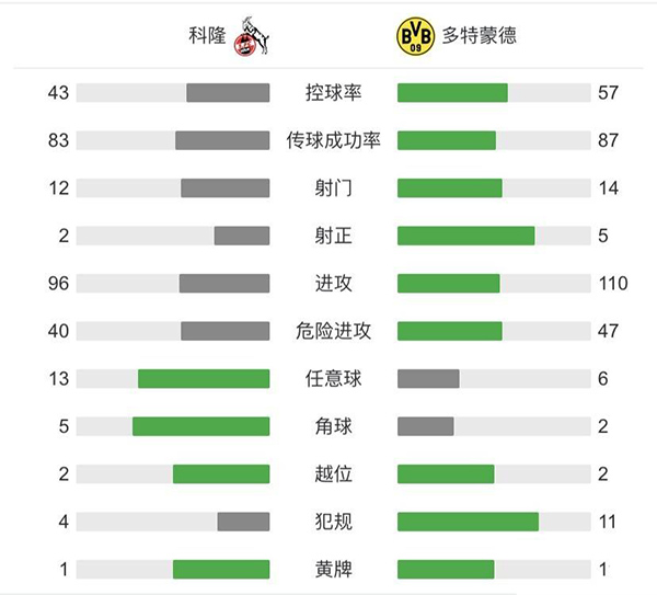 全场比赛结束,多特客场2-2战平科隆。