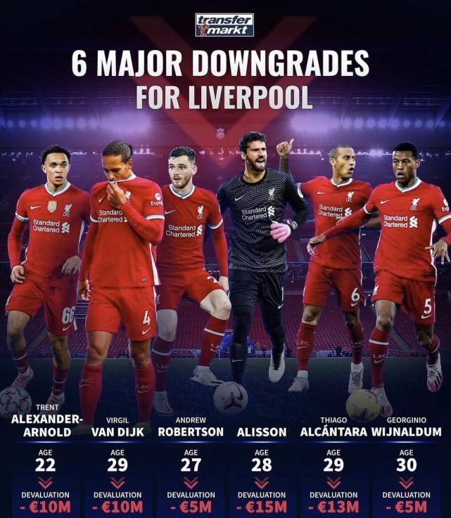 24直播网3月19日讯 ,权威数据网站德国《转会市场》对英超球员的身价进行了更新。而不出意外的是,近期表现糟糕的英超卫冕冠军利物浦,队内多位球员的身价都出现了大幅度的下滑。包括范戴克在内的9位利物浦巨星,身价总共下跌了1.05亿欧元。