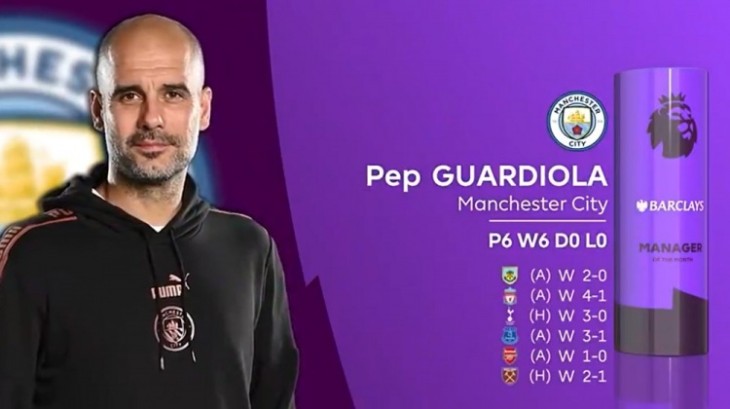 这是瓜迪奥拉连续第二次斩获英超月度最佳主帅荣誉,一月份,他同样以六战全胜的战绩获选。