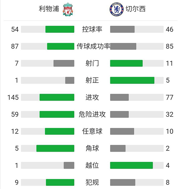 最终全场比赛结束,利物浦0-1不敌切尔西。