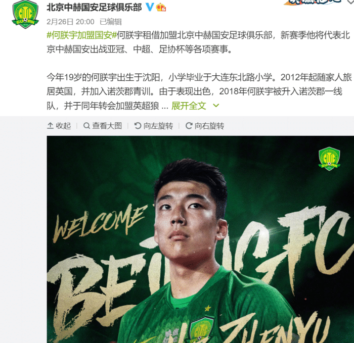 24直播网3月4日讯 随着中超联赛进入至暗时刻,江苏苏宁和天津泰达已经“收拾行李”准备离开,作为中超“八冠王”的广州恒大也不敢吭声。万万没想到的就是,有一家俱乐部避其锋芒,不仅未改“中性化”队名还连续引进三名球员。北京国安在官宣曹永竞与高天意两位年轻球员之后,还将狼队海归球员何朕宇招致麾下。值得一提的就是,何朕宇最爱吃西餐,还与上赛季表现出色的戴伟浚曾经同袍。