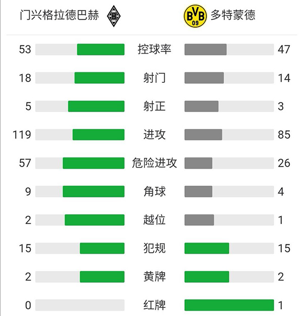 最终全场比赛结束,门兴0-1不敌多特蒙德。