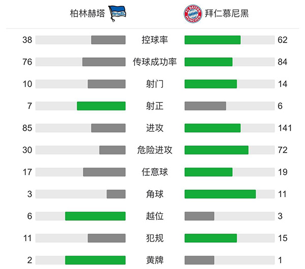 查看:柏林赫塔vs拜仁慕尼黑 全场录像技术统计: