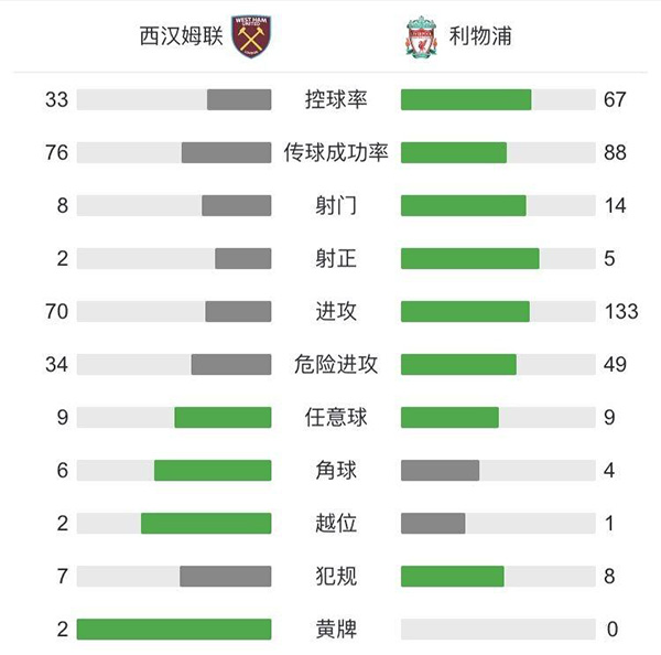 查看:西汉姆vs利物浦 全场录像技术统计: