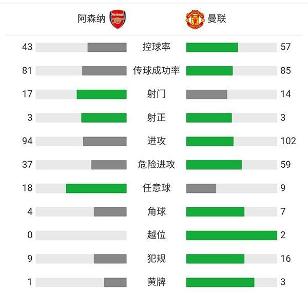 曼联0-0阿森纳 拉卡泽特中框拉什福德卡瓦尼失良机