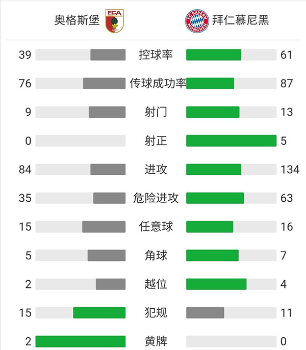 查看:奥格斯堡vs拜仁慕尼黑 全场录像技术统计: